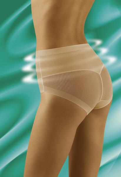 Karcsúsító bugyi innovatív 3D kötött anyagból. Hatékonyan karcsúsítják a hasat és formálják a csípővonalat, miközben megőrzik a használat kényelmét. A termékben használt finom mikroszálak kiküszöbölik a ruhákon a tapadás és az elektromosság hatását. A speciális vágás és a hátoldalon lévő háló gondoskodik a fenék megemeléséről. Anyaga: 58% poliamid, 42% elasztán